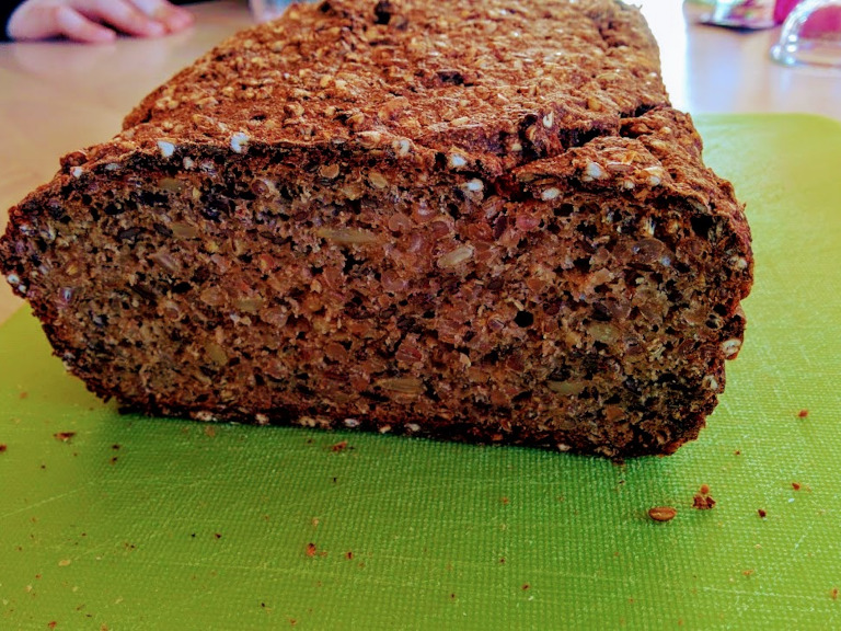Anbefaling: lad brødet køle af natten over, før man skærer i det - det kan ellers blive klægt.