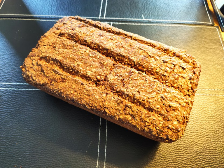 Anbefaling: lad brødet køle af natten over, før man skærer i det - det kan ellers blive klægt.