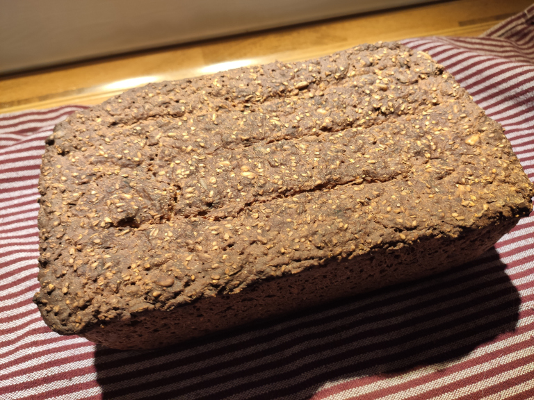 Anbefaling: lad brødet køle af natten over, før man skærer i det - det kan ellers blive klægt.