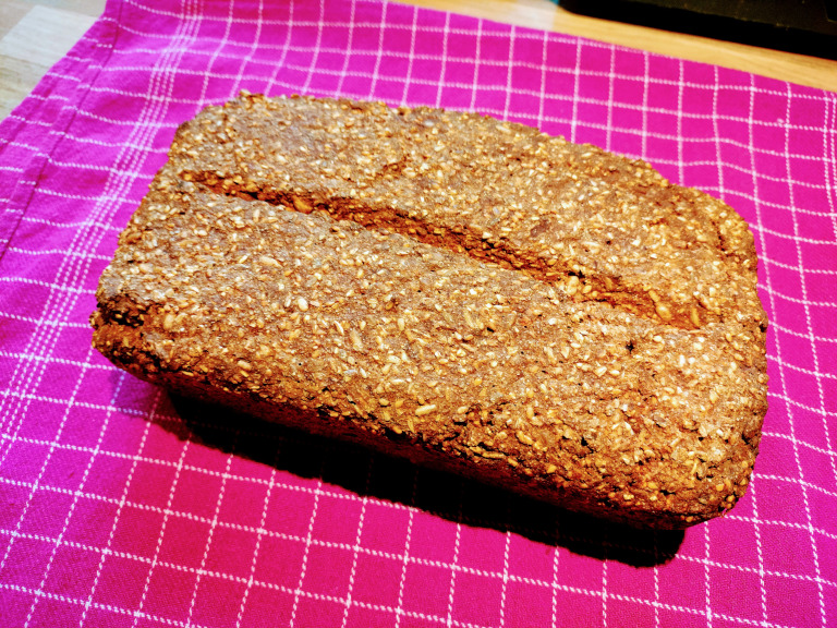 Anbefaling: lad brødet køle af natten over, før man skærer i det - det kan ellers blive klægt.
