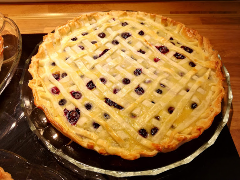 Blåbærene fordeles ovenpå, og tærten afsluttes ved at placeres gitteret øverst.