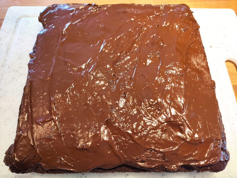 Dejen hældes i en smurt form og bages ved 180° i 50 min. - det er meningen den skal være klæg.