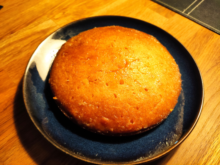 Når kagen er bagt færdig, prikkes den med f.eks. en tynd strikkepind og siruppen hældes over mens kagen endnu er rygende varm og lad kagen suge den til sig.