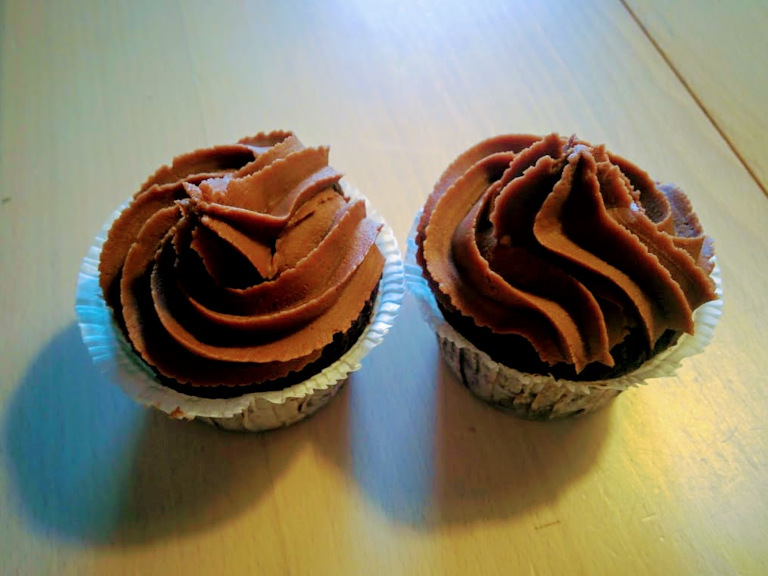 Glasuren påføres kagerne, f.eks. med sprøjtepose+tylle eller forsigtigt med en smørekniv.
