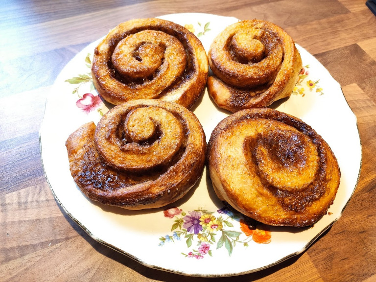 Dejen rulles ud til en rektangel, remoncen smøres på og dejen rulles derefter til en roulade. Rouladen skæres ud i skiver = snegle, der lægges på en bageplade.