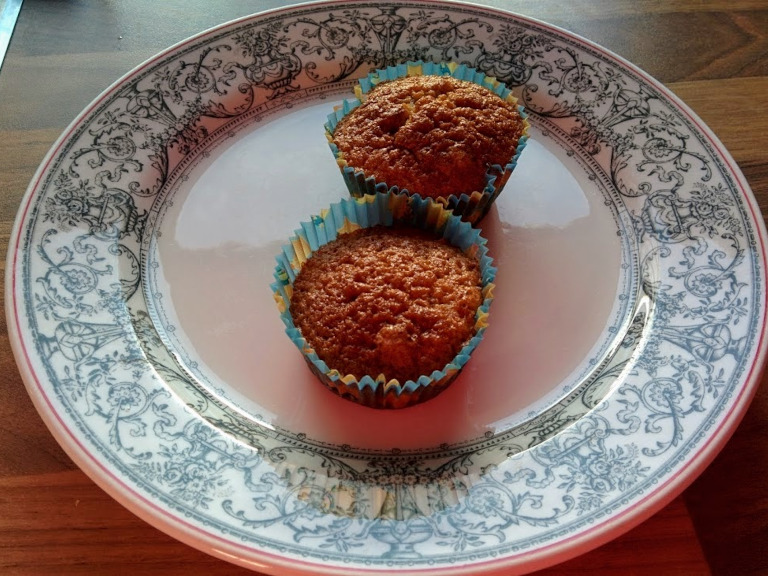 Dejen (meget flydende) fordeles i muffinformene, og bages i ca. 30 min. ved 180°.