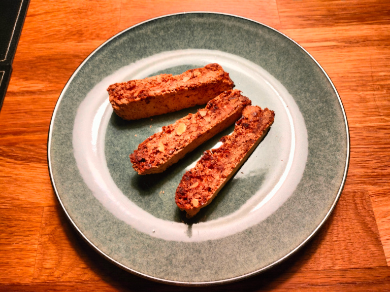 Dejen formes til stænger på 2-3 cm tykkelse, der bages på bagepapir ved 150° i 40 min.