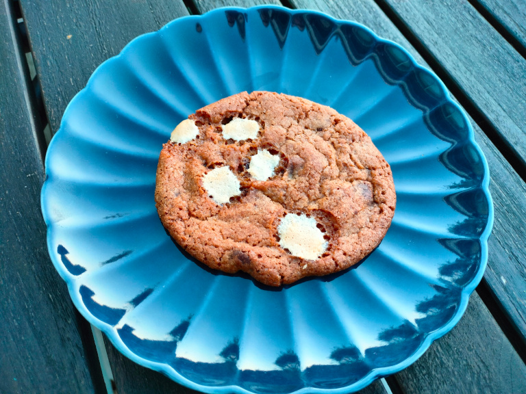 Chokolade og ½-delen af skumfiduserne vendes i dejen - og dejen hviler i køleskabet i 30 min.