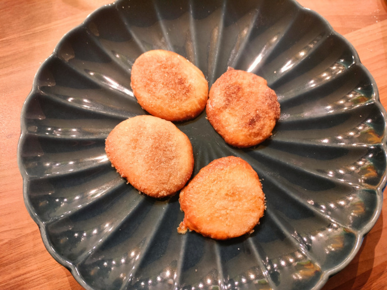 Kagerne placeres på bagepapir, pensles med æggemassen, drysses med kanelsukker og bages i ovn ved 180° i ca. 10 min.