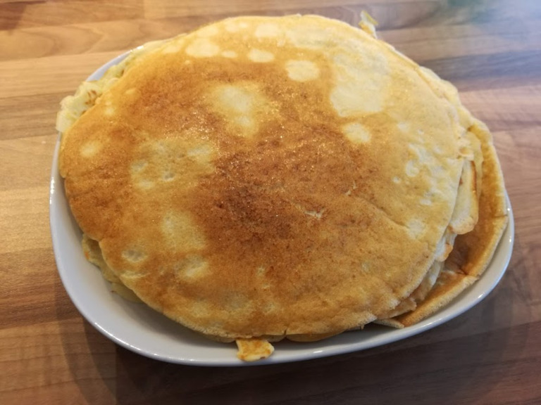 Alle ingredienserne piskes godt sammen og pandekagerne steges på en varm pande ? evt. med lidt fedtstof efter behov.