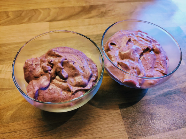 Husblas piskes i, og massen vendes forsigtigt i flødeskummet.