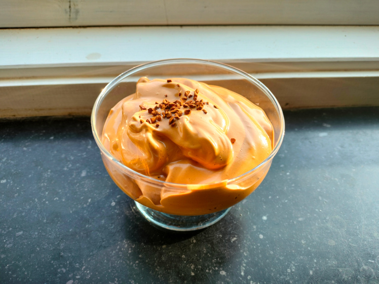Når moussen er fast - kan vendes på hovedet, er den klar til servering.