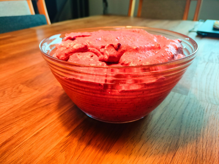 Solbær, sukker og yoghurt moses godt sammen. Jeg bruger en blender til dette.
