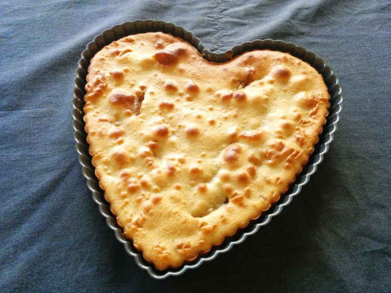 Låget fordeles øverst og kagen bages ved 175° i 15-20. (indtil låget er gyldent).