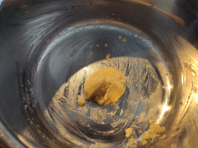 Smørret røres blødt og melet røres i - indtil bollen bliver fast.
