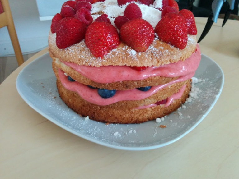 Hvis man også gerne vil dækkes ydersiden af kagen med cremen, laves da blot dobbelt portion af cremen.