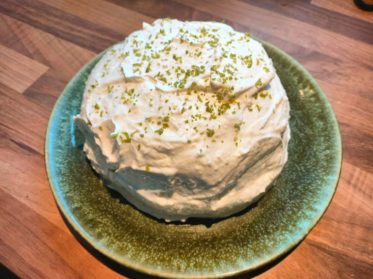 skal af 1 limefrugt, zestet fint (evt.: gem lidt til pynt)