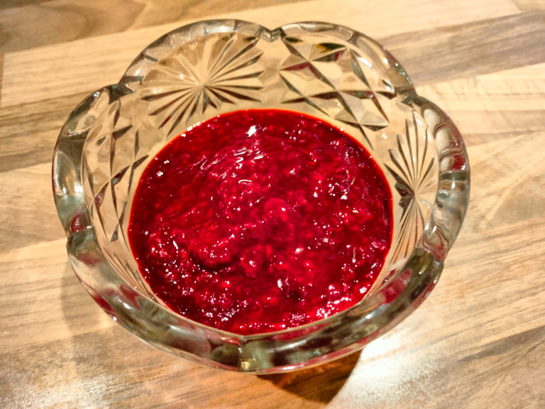 150 g hindbær2 spsk. vand½ tsk. vaniljesukker