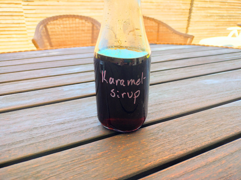 Hvis den skal bruges til f.eks. kaffe, må den gerne være flydende og hvis til dessert er det godt med en tykkere sirup. Jo længere tid man lader siruppen simre, jo tykkere bliver den.