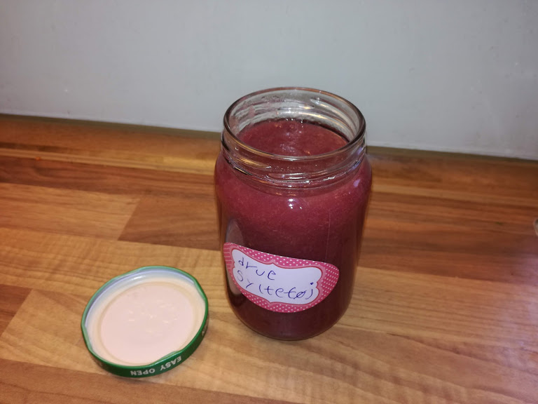 Vindruerne vaskes og skæres igennem til ½ eller ¼ - hvad der er nødvendigt for at være sikker på at ALLE kerner er ude - for selv kernefri vindruer kan have enkelte kerner.