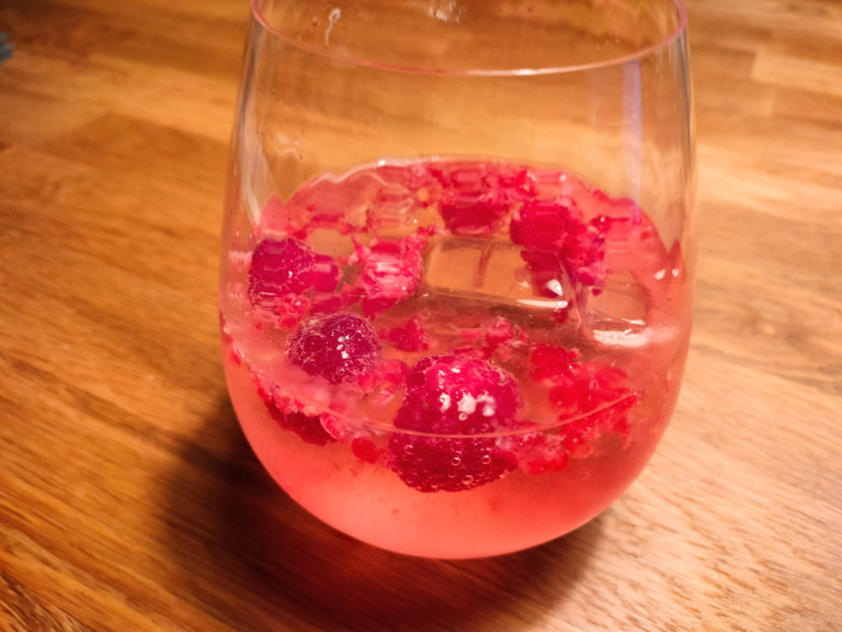 1 glas8 hele hele hindbær1 god holdfuld isterninger¾ dl gin1½ dl tonicFem hindbærbær moses helt fladt, f.eks. nede i glasset med en muddler.Tilsæt is, gin og tonic.God fornøjelse.