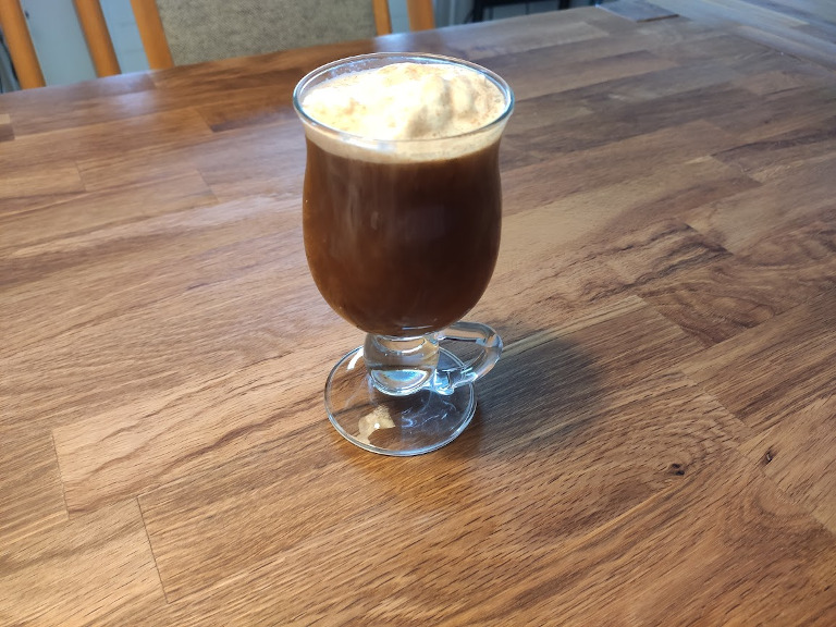 Kaffen hældes op i et glas eller en kop, kandis og whisky røres i og drikken sluttes af med skummet.