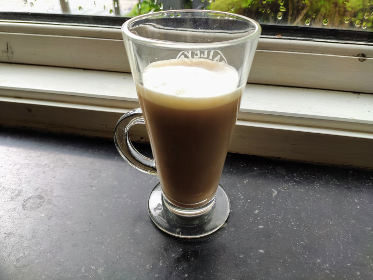 1 dl varm mælk 1 spsk whisky 1 dl espresso (stærk kaffe) Rørsukker efter behov