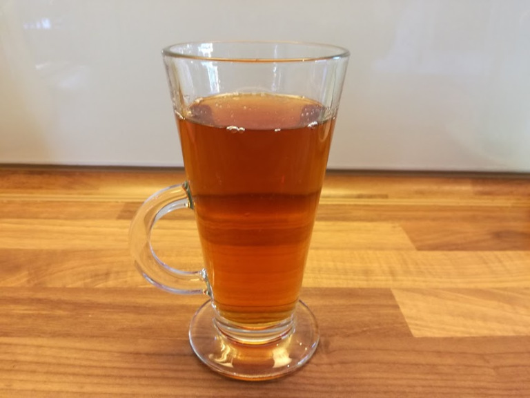 Krydderierne og citronen tilsættes vandet, der bringes i kog. Sluk og lad trække i 10 min.