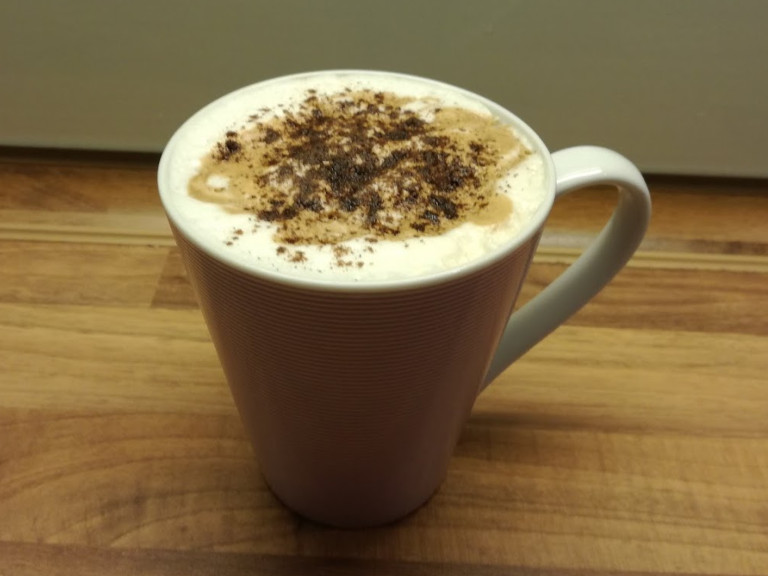 Mælkeskummet hældes i kruset, kaffelikøren hældes over skummet og til sidst drysses med lidt allehånde på toppen.
