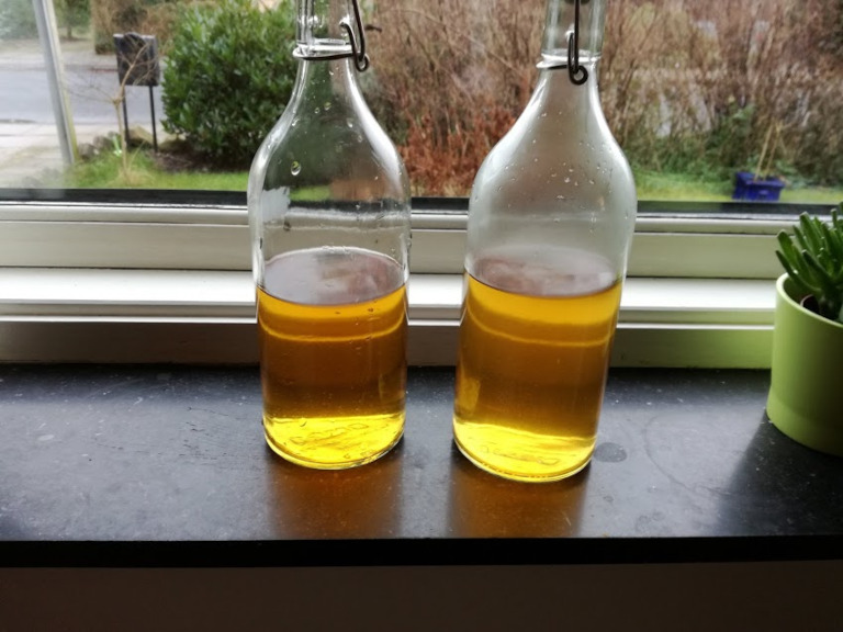 Alle 3 ingredienser anbringes i et glas, en flaske eller anden egnet beholder.