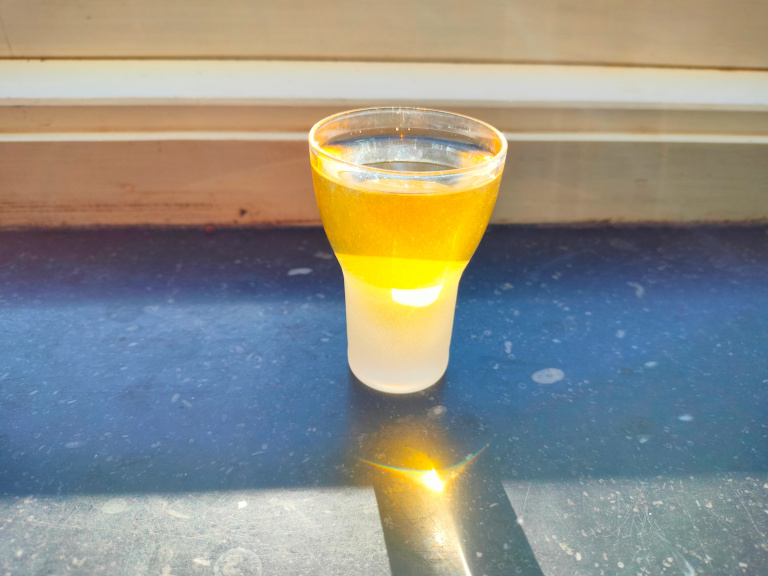 Alle 4 ingredienser anbringes i et glas, en flaske eller anden egnet beholder.