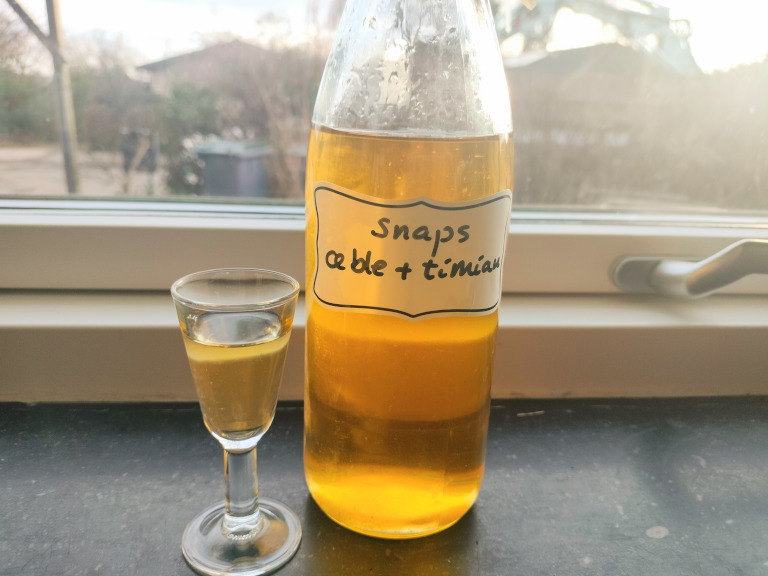 Alle 4 ingredienser anbringes i et glas, en flaske eller anden egnet beholder.