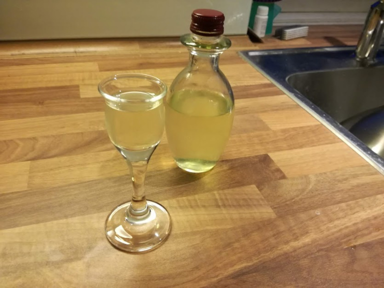 Lad trække i 4 dage, hvorefter snapsen drænes og hældes på flaske.
