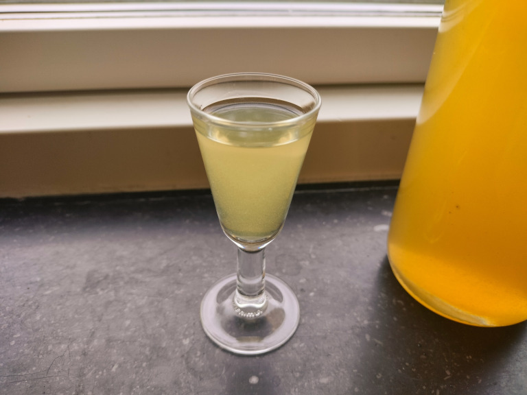 Snapsen drænes, kandis tilsættes og lad det opløse.