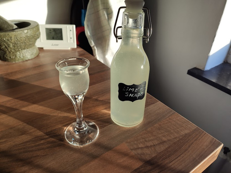 Lad trække i 4 dage, hvorefter snapsen drænes og hældes på flaske.