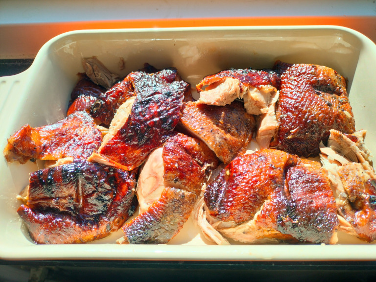 Hæld marinaden ved, gnid godt ind og lad trække på køl i 6 timer.