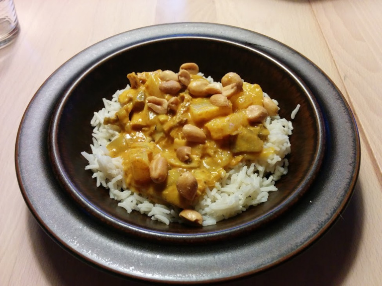 Gryden smages til, og lige før serveringen blandes peanuts i.