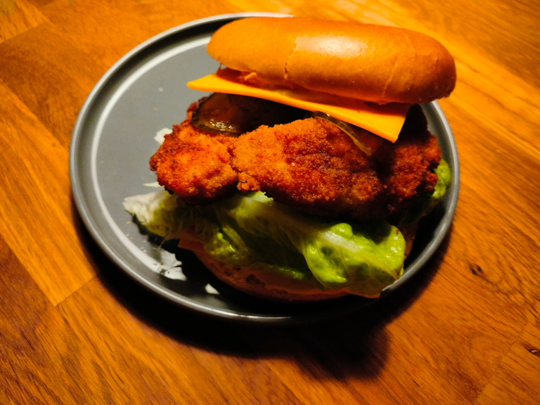 Kødstykkerne vendes i ægget og derefter i raspblandingen.