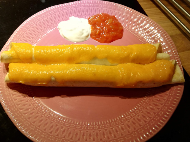 Kødet fordeles på pandekagerne sammen med halvdelen af osten.