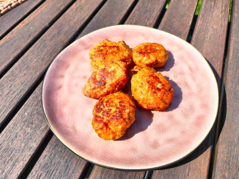 Alle ingredienserne røres godt sammen. Lad evt. hvile på køl i 30 min., så bliver farsen mere fast.