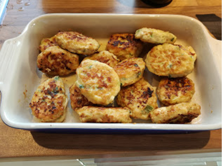 Farsen formes til frikadeller, der steges på en varm stegepande.