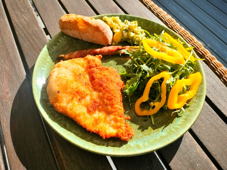 Kan anbefale at kombinere de varme schnitzler med lidt hvidløgssmør på toppen, med de er rygende varme.