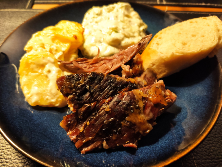 Stegen stilles i ovn ved 100° i 5-7 timer - den skal være tildækket med et låg eller folie.