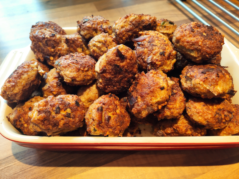 Farsen formes til frikadeller, der steges på en varm stegepande.