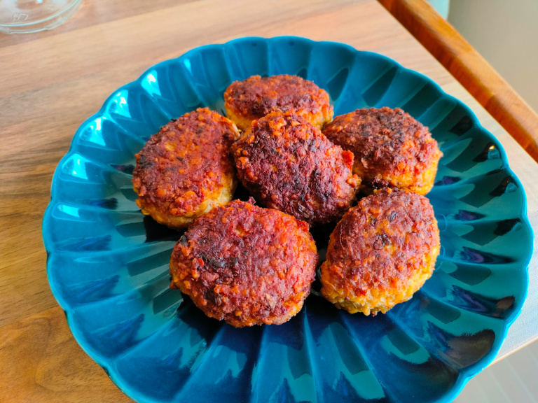 Farsen formes til frikadeller, der steges på en varm stegepande.
