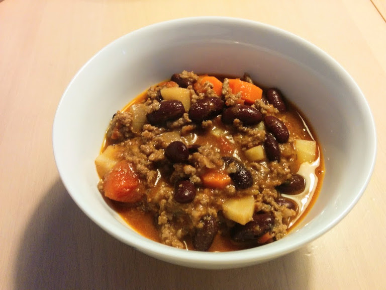 Hvidløg, chilipulver, tørret chili og spidskommen tilsættes og svitses med i ca. 1 min.