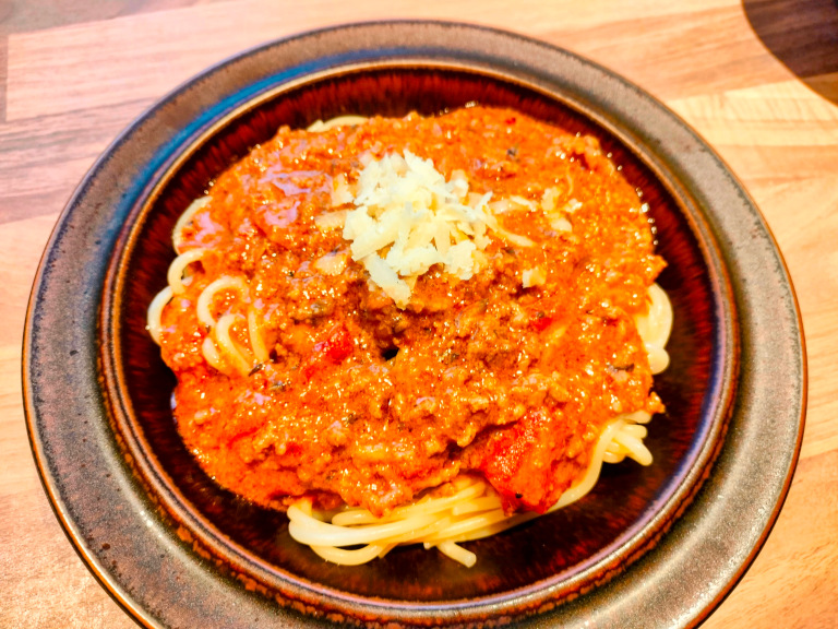 Serveres til f.eks. kogt spaghetti og lidt revet parmesan.