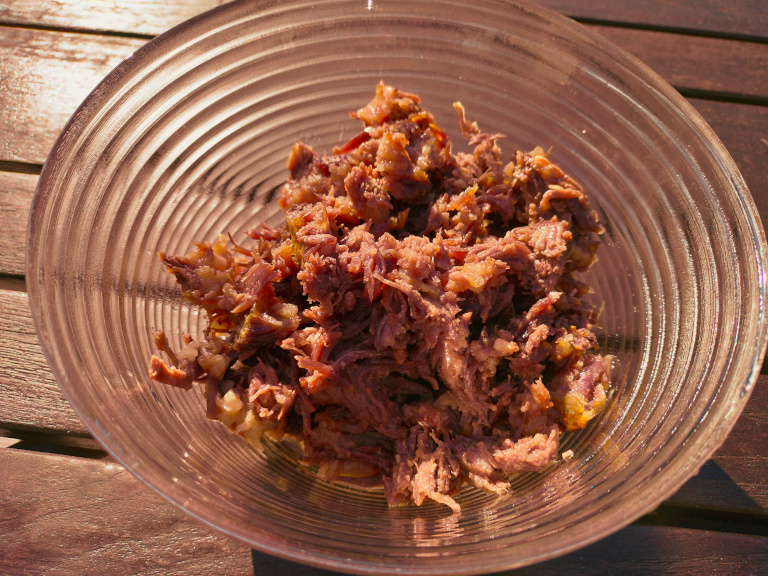 Kødet kan bruges som fyld i f.eks. pitabrød eller i en burger - smager dejligt med salat og hjemmelavet BBQ-dressing.