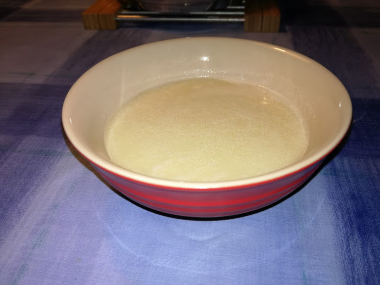 ¾ l suppe, af aspargesvandet og hønsebouillon