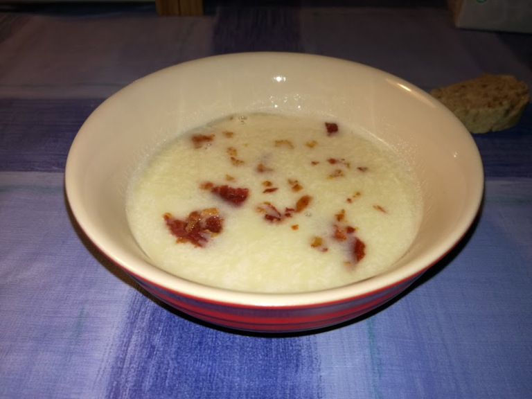 Serveringsforslag: Man kan evt. drysse lidt sprødstegt bacon på toppen af suppen.